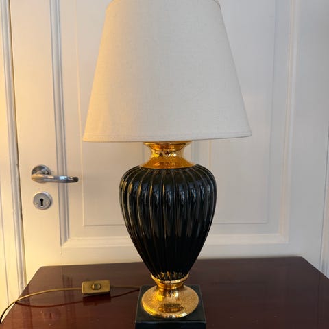 Et par vintage Maison Le Dauphin lamper i creme med messingtuch og keramik, stil Contemporary Chic, dimensioner 30 x 30 x 47 cm, oprindelse Frankrig, fra 1970–1980, god stand og virker; model Luxurious Green set, særdeles sjælden. Klik på den blå "gå til varen" knap, for at købe eller byde på denne vare. Den samlede pris vil blive vist inden du afgiver dit bud.