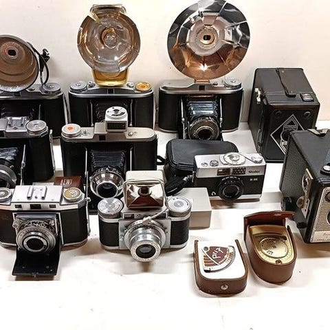Zeiss Ikon-lot med Ikonta 524/24, Ikonta 524/22 og Ikoblitz, fysisk tilstand God og ikke testet, til 35 mm film, estimeret periode 1950–1960. Klik på den blå "gå til varen" knap, for at købe eller byde på denne vare. Den samlede pris vil blive vist inden du afgiver dit bud.