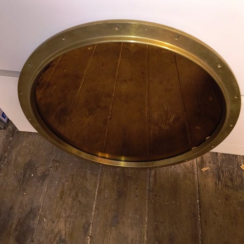 Dette objekt er et originalt robust messing portholespejl og bruges ofte som dekorativt tilbehør med maritimt tema.