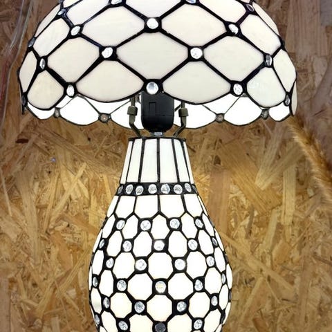 Tiffany-stil bordlampe i blå og grøn, inspireret af Art Nouveau, af stained glass og metal, i ubrugt nytilstand og i funktionsdygtig stand, mål 35 × 20 × 20 cm, vægt 1,1 kg, oprindelse Asien, anslået periode 2022. Klik på den blå "gå til varen" knap, for at købe eller byde på denne vare. Den samlede pris vil blive vist inden du afgiver dit bud.