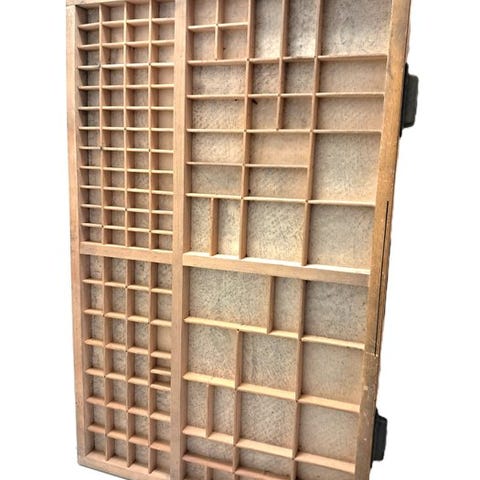 Original hollandsk trætrykboks til bogstaver, model Printers tra, i god brugt stand med små tegn på ælde og pletter, dimensioner 83 × 53 cm, dybde 4 cm, vægt 4,7 kg, Oprindelse: Nederlandene. Klik på den blå "gå til varen" knap, for at købe eller byde på denne vare. Den samlede pris vil blive vist inden du afgiver dit bud.