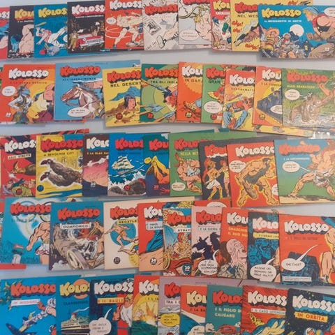 Et lot af 20 hæftede tegneserier fra serien Gli Albi dei Super-Eroi con Adesivi, udgivet af Editrice Corno i 1973, tegnet af Colan, Andru, Windsor-Smith og andre, i fremragende stand. Klik på den blå "gå til varen" knap, for at købe eller byde på denne vare. Den samlede pris vil blive vist inden du afgiver dit bud.