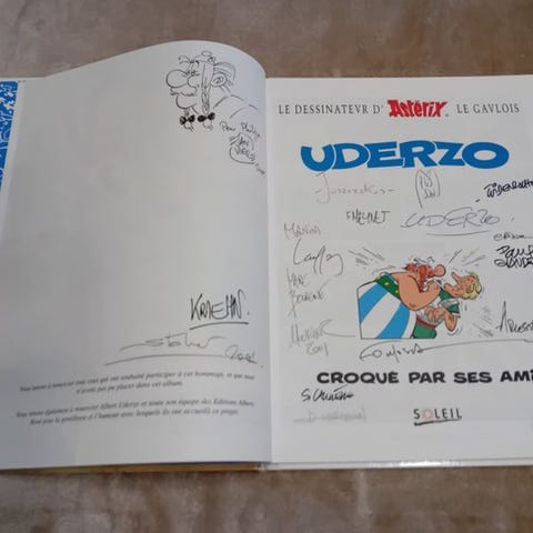 Astérix og Obélix serigrafi 'Le menhir d'or' af Uderzo, første i en seksdele Serie, håndsigneret af kunstneren, i næsten ny tilstand. Klik på den blå "gå til varen" knap, for at købe eller byde på denne vare. Den samlede pris vil blive vist inden du afgiver dit bud.