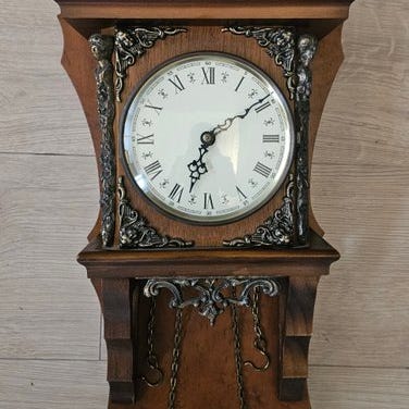 Dekorativt svensk vægur i Gustaviansk stil, fremstillet af Westerstrand i 1988.