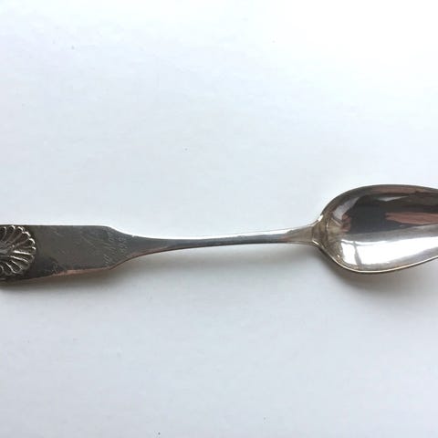 Sølvtøj, Teske, Musling, 1 stk. teske, ca.13 cm, brugt og patineret.