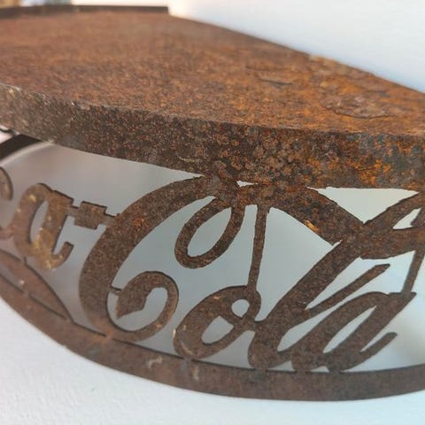Coca Cola reklameblik, der også kan bruges som taburet. Øverste låg har brugsspor, indersiden er i fremragende stand.