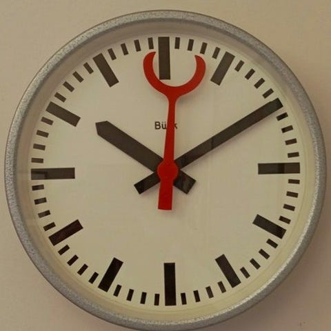 Denne specifikke type er en firkantet slaveur (også kaldet slavenur), som oprindeligt blev brugt i fabrikker, skoler og på togstationer i 60’erne og 70’erne.
