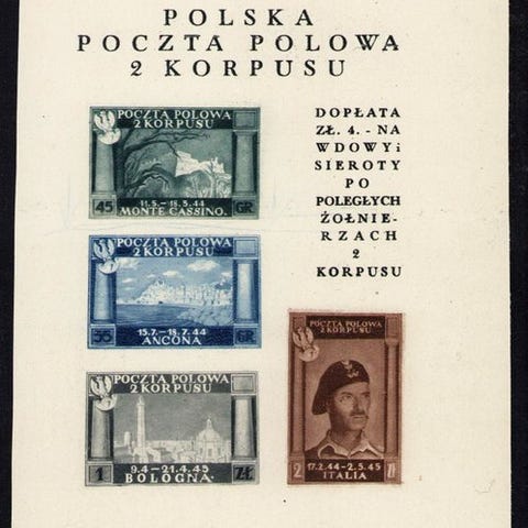 Polsk korps 1946 - Polske sejre i Italien, serie af 4 værdier i forskellige f...