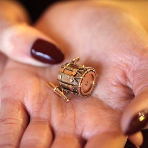 Charms, guld, og 925ALE, Sjælden sølv charm fra Kronprins Frederiks bryllup den 14.05.2004 med 14 karat guld krone på.
