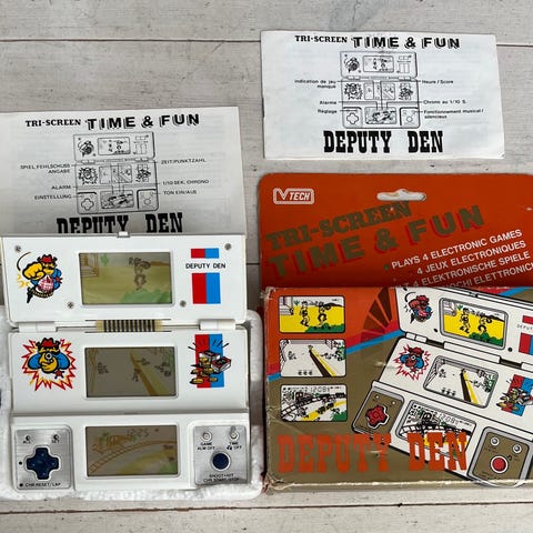 Clementoni Speak & Spell fra Grillo Parlante-serien, årstal 1980, i meget pænt brugt, med original emballage, i fungerende stand, inkl. plastikhus, 31 brikker og brugsanvisning med skrivermærker, en sjælden første udgave. Klik på den blå "gå til varen" knap, for at købe eller byde på denne vare. Den samlede pris vil blive vist inden du afgiver dit bud.