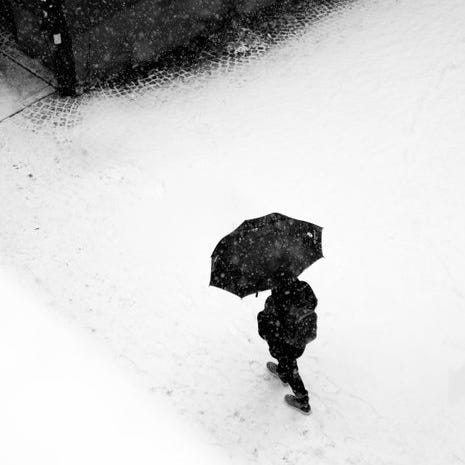 Dette sort-hvide fotografi fanger en spiraltrappe, der bliver mere end arkitektur—den bliver en meditation over uendeligheden. Øjet drages indad, trukket blidt og uundgåeligt mod forsvindingspunktet i kernen. Hvert trin buer sig med en bevidst rytme og danner en perfekt koreografi af skygge og lys.