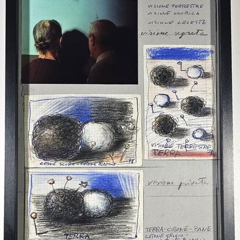 Et historisk værk fra 70'erne, præcis fra 1979, af Mester MICHELE ZAZA, fotografi påført på karton, måler 24x24, titel "Neo-Terrestre".