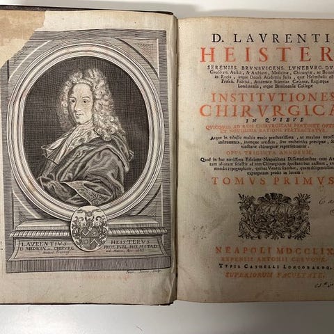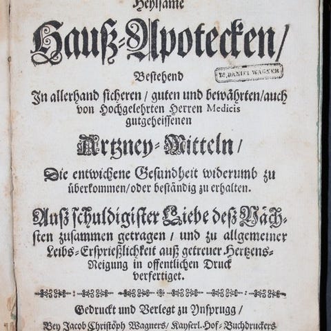 Michael Ettmüller (1644-1683). Metode til at konsultere og ordinere medicinske formularer. Lyon, Thomas Amaulry, 1698, (7) ff., 656 s. (34) ff.