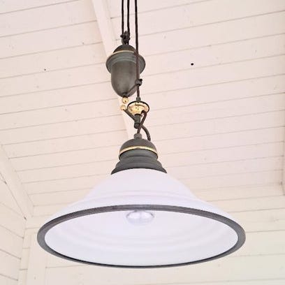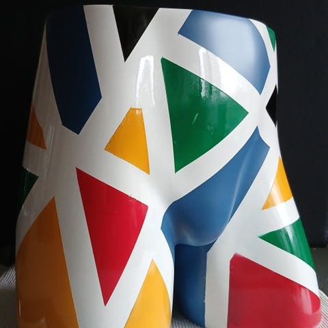 Kunstnerisk mannequin / designlampe, håndfærdigt afsluttet med akrylmaling af høj kvalitet, påført ved svampe-teknik.