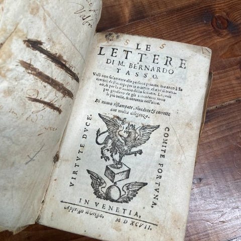 Små pletter og pletter hist og her, men generelt et eksemplar i fremragende stand. Smukke kapitæler, forestil dig, og meget smuk typografisk mærke, træsnit ved forsiden og i bunden af volumenet.