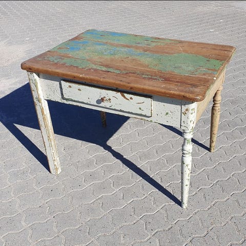 Italiensklavet bordplade i massivt træ i brun, designet i industriel stil, højde 170 cm, bredde 150 cm, dybde 40 cm, årti 1960–1970, i god brugt stand med mindre alderstegn. Klik på den blå "gå til varen" knap, for at købe eller byde på denne vare. Den samlede pris vil blive vist inden du afgiver dit bud.