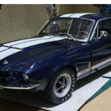 1:6 skala reproduktion af Ford Mustang GT Shelby 1967 i metal, cirka 75 cm lang og omkring 15 kg tung, med fjernbetjening til lys, blinklys og motorlyd; funktionen er noget tilfældig; god stand med enkelte fejl. Klik på den blå "gå til varen" knap, for at købe eller byde på denne vare. Den samlede pris vil blive vist inden du afgiver dit bud.