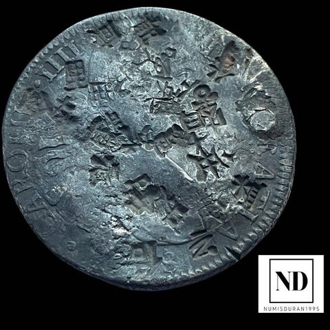 Sølv 4 reales mønt fra Segovia, dateret 1591 under Filip II, vægt 13,43 g, firecifret årstal til højre for skjoldet, kongehovedets navn synligt, dobbeltprägning, sjælden og i konservativ tilstand uden certifikat. Klik på den blå "gå til varen" knap, for at købe eller byde på denne vare. Den samlede pris vil blive vist inden du afgiver dit bud.