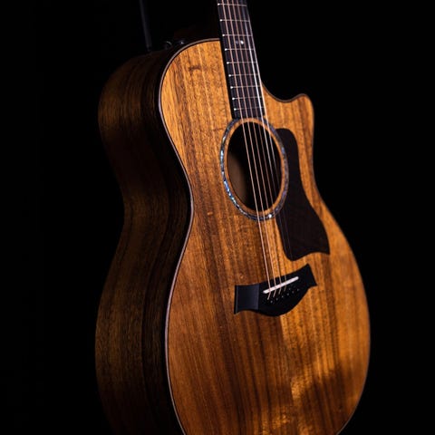 Akustisk guitar er ca. 102 cm lang og er blevet håndsigneret på en skåret, der er blevet omdannet til en pick-guard af Taylor Swift.