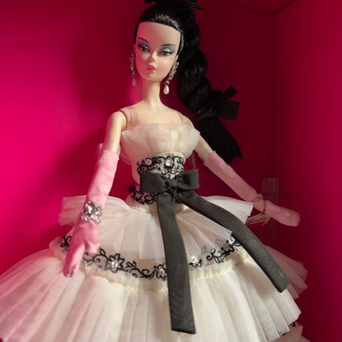 Denne Barbie-dukke legemliggør den tidløse skønhed, forundring og fortryllelse af Vincent van Goghs 'Stjernenat', som kan ses på Museum of Modern Art (MoMA) i New York. Inspireret af kunstværket omgiver hendes flagrende krøller en gul halvmåne, og hendes kjole indeholder andre symbolske elementer, fra vindens hvirvlinger på hendes krop til den fredelige landsby langs kanten. Hendes enkelte sorte handske fortsætter indtrykket af cypressen på hendes kjole, og hendes elegante hæle fremkalder de bølgende bakker i landskabet. Oplev glæden ved mode designet blandet med kreativiteten i tidløs kunst, et samarbejde der kun var muligt takket være Mattel Creations og MoMA.