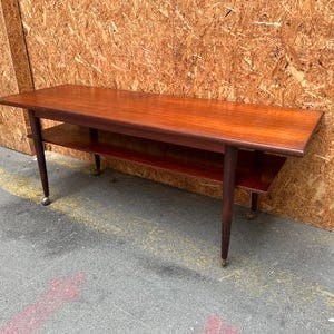 Sofabord, Stilrent sofabord i teak med hylde.