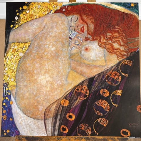 Smukt, udtryksfuldt kunsttryk af Gustav Klimt i formatet 41 x 25 cm med titlen Wasserschlangen I (1904). Værket er et højkvalitetsprint på fast papir, og i meget god stand.