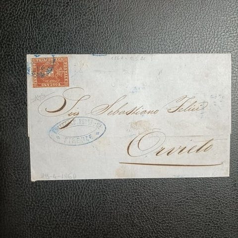 Brevet måler 7,5 x 13 cm, ruten Siena-Grosseto, aftryk 5. maj 1860, altså 4 måneder siden udsendelsen