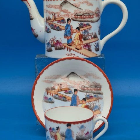 Særdeles smukt, originalt Arzberg theesæt „Brasilia Flora“ til 6 personer.