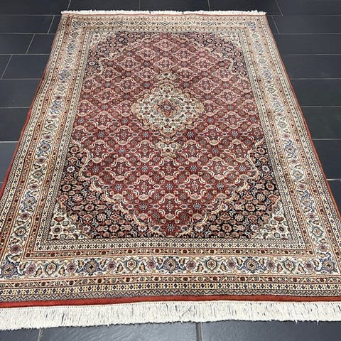 Der tilbydes et håndknyttet orientalsk tæppe fra Tabriz.