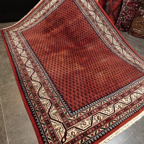 Håndflettet Sarough Mir tæppe fra Indien, målene 300 × 200 cm, uld på bomuld, 100% uld i luv, 100% bomuld i underfugtningen, fra det 21. århundrede, i god generel stand med brugsspor, inklusive ægthedscertifikat. Klik på den blå "gå til varen" knap, for at købe eller byde på denne vare. Den samlede pris vil blive vist inden du afgiver dit bud.