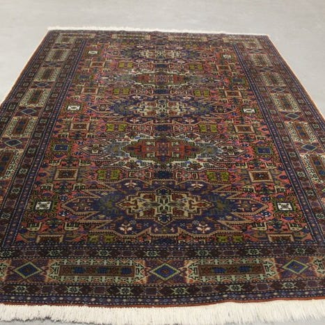 Håndvævet tæppe fra Azerbajdsjan, målene 157 x 116 cm, uld på uld, beskadiget og kræver restaurering. Klik på den blå "gå til varen" knap, for at købe eller byde på denne vare. Den samlede pris vil blive vist inden du afgiver dit bud.