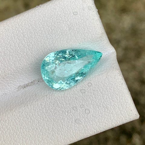 Natursten Paraiba turmalin, 1 sten i alt 1,99 karat, pæreformet med modificeret brillant skær, blågrøn farve, oprindelse Mozambique, laboratorierapport TH25G114285 fra ICA GemLab, ingen tegn på behandling. Klik på den blå "gå til varen" knap, for at købe eller byde på denne vare. Den samlede pris vil blive vist inden du afgiver dit bud.