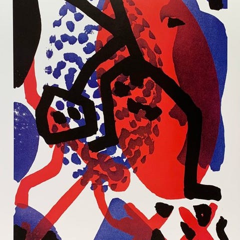 A.R. Penck (efter). Autoriseret offsetlitografi på tungt, glat, satineret papir (ca. 300 g/m²).
