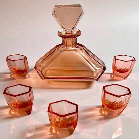 Imponerende serie af 12 krystalglas, produceret af Cristalleries du Val Saint Lambert (Belgien) i begyndelsen af det 20. århundrede.