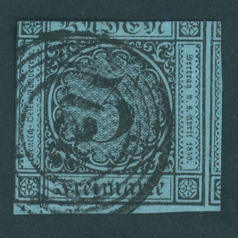 Baden 1862, brugt 9 Kr-stemplet i rødbrunt, gullbrunt, blegt brunt og mørkebrunt, Mi.Nr. 20 med varianter 20a, 20b, 20ba og 20c. Klik på den blå "gå til varen" knap, for at købe eller byde på denne vare. Den samlede pris vil blive vist inden du afgiver dit bud.