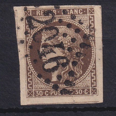 Fransk frimærke fra 1867, ubrugt med hæfte, catalogiseret som Yvert n°30, titel: Côte 1300€, rare Napoléon lauré, 30c brun. Klik på den blå "gå til varen" knap, for at købe eller byde på denne vare. Den samlede pris vil blive vist inden du afgiver dit bud.