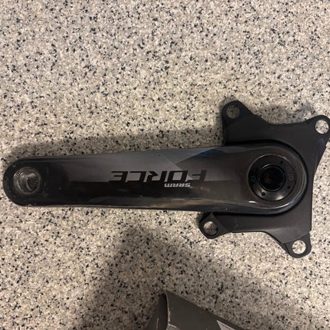 Sram Force kranksæt XPLR med wattmåler med klinge 40T til gravel dubset Egnet til racercykel eller gravelcykel med Sram Force drivlinje. Farve hovedsageligt sort med lys Force-logo på armen. Velegnet som udskiftning eller opgradering af eksisterende Sram Force kranksæt. 172.5 mm helt nyt og pillet af cykel