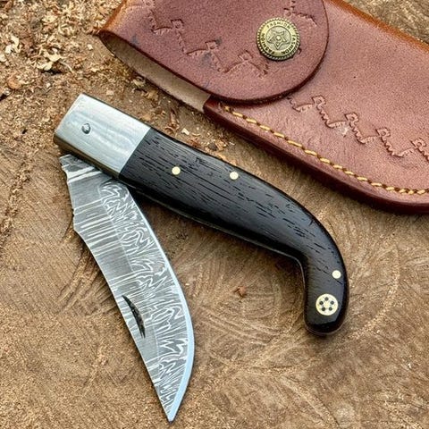 Vi præsenterer vores udsøgte håndlavede foldbare kniv, tilgængelig i to fantastiske farver. Fremstillet med omhyggelig opmærksomhed på detaljer kombinerer vores knive materialer af høj kvalitet, enestående skarphed og overlegen håndværk. Perfekt til samlere, friluftsentusiaster og som en særlig gave til dem, du holder af.