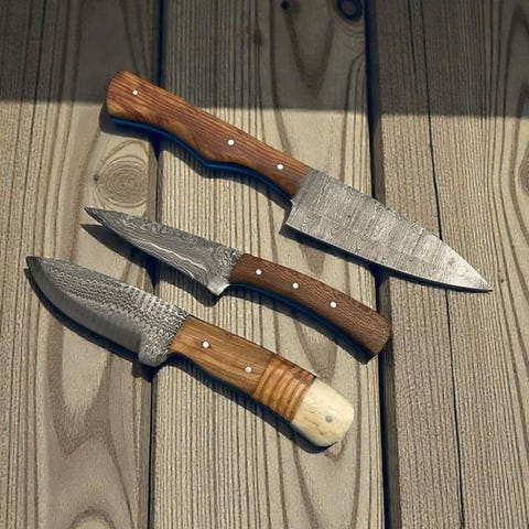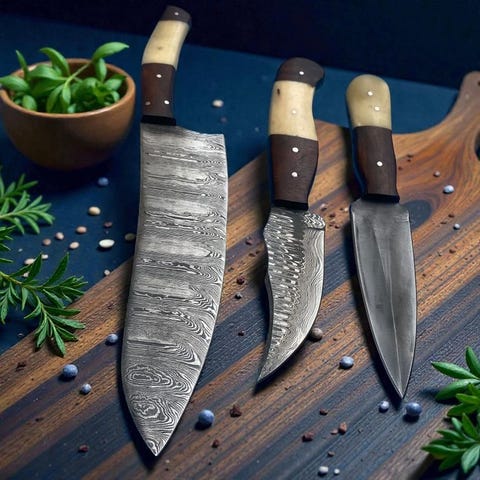 Set of THREE, Hand-Forged with Old & Twisted Steel, Japanese Style Knives fro...