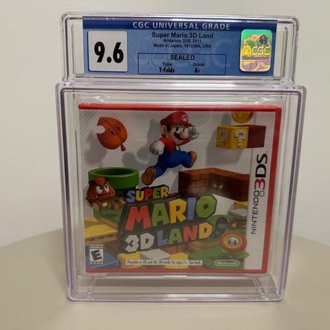 Tilbuddet omfatter en original fabriksforseglet kopi af New Super Mario Bros. 2 til Nintendo 3DS, autentificeret og indkapslet af WATA Games med en imponerende samlet score på 9.6 og seal-ratingen A+.
