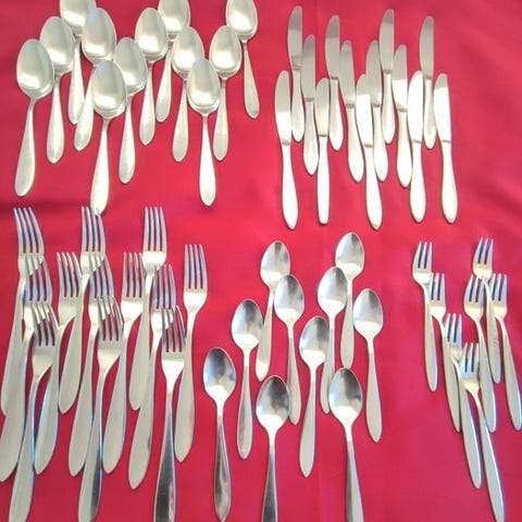 Et sæt på 35 dele bestående af bestik til 6 personer i stål 10/18, fremstillet af Morinox, modellen Lunik 2060, ikonisk model tegnet af Carl Auböck i 1955, tildelt ved Verdensudstillingen i Bruxelles i 1958.