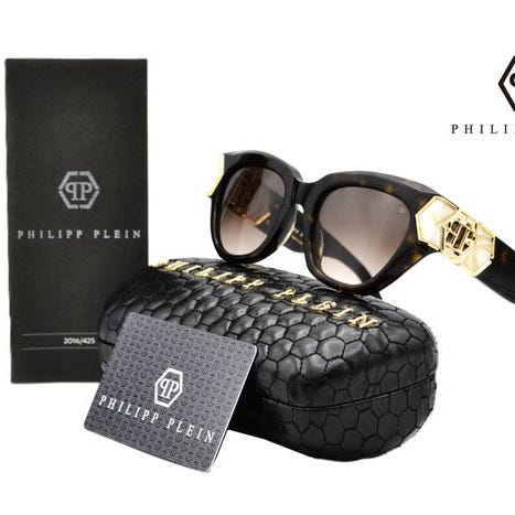 Rammen er fremstillet i sort acetat af høj kvalitet, som giver soliditet og tilstedeværelse, kombineret med en titanmetalkonstruktion, der følger den øverste kontur og siderne. Dette metalliske element, udført i en gylden nuance, indgraverer omhyggeligt Philipp Plein-logoet gentagne gange, og tilføjer et distinkt og genkendeligt detaljeniveau uden at bryde ensemblets