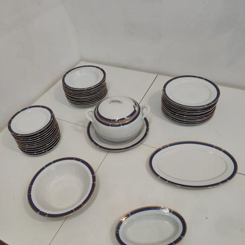 Pragtfuldt vintage sæt bestående af 18 elegante ovale tallerkener fra det tyske mærke MELITTA, af typen Jeverland med den særlige dekoration kaldet Reepsholt.