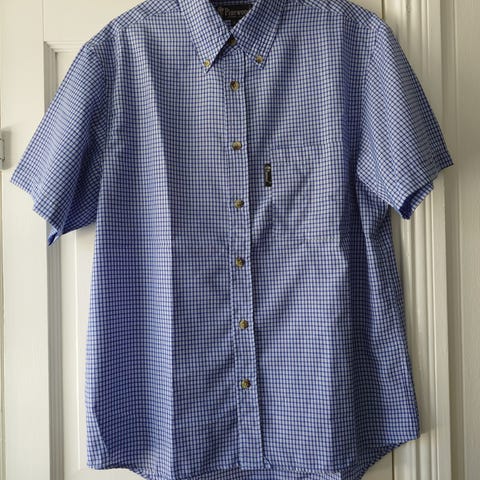 Skjorte i 100% bomuld, med to knaplukkede lommer, kraftig kvalitet, god stand