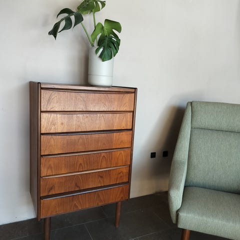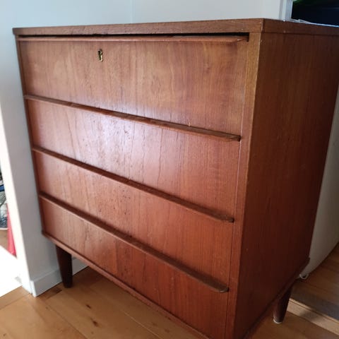 Super skøn teaktræs kommode. Lækre messing greb og fin stand. Måler 95 høj, 75 bred og 40 dyb. Koster 800,- #retroshop #retroshopbrande #teaktræ #teaktræsmøbler