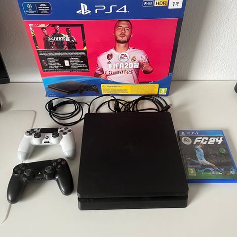 Sony PlayStation 4 Slim konsol med to controllere sort