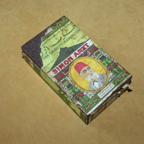 Den anden dåse er en tobaksdåse fra firmaet CARRERAS LIMITED, 1788, Arecadia works London, England. Indholdet har været CRAVEN "A" Virgina Cigarettes. Dåsen måler 15 x 11 x 2 cm.