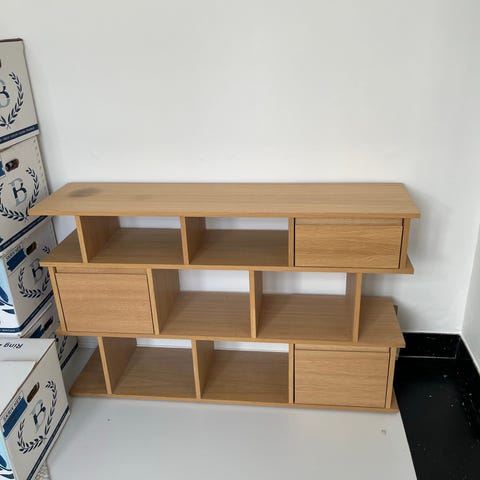 Praktisk skænk med skuffer fra Tylko i grå. Kan blandt andet bruges i gang til opbevaring af sko, huer og halstørklæder. Fungerer som bænk, så man kan sidde ovenpå den og tage sko på. Solid og velholdt.