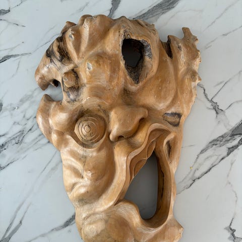 Skulptur, motiv: Opadstræbende, Udført i mørk flosset træ. Unika. På fod af metal og beton.