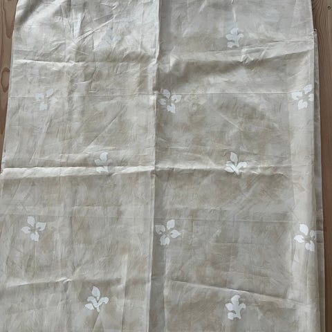 Helt nyt og ubrugt forhæng med romantisk motiv i skønne farver - Mål: 175 x 80. Fint forhæng til badeværelse opbevaringsrum eller andet man vil skjule.